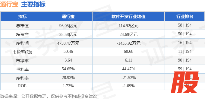 该股主要指标及行业内排名如下: